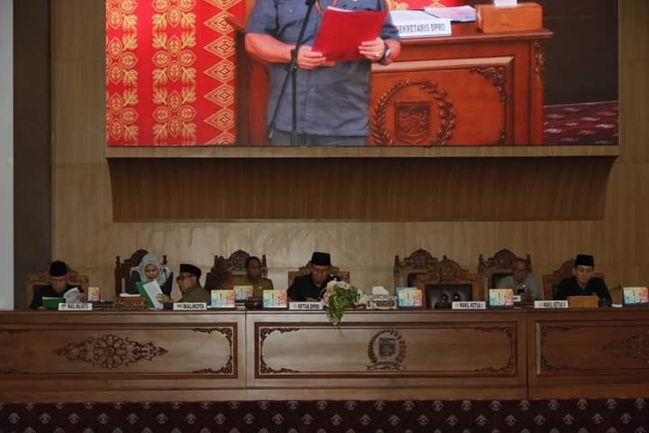 Kabar-Silampari.Com-LUBUKLINGGAU-Wali Kota Lubuklinggau, H SN Prana Putra Sohe atas nama eksekutif menyampaikan Raperda Laporan Pertangjawaban (LPJ) APBD Kota Lubuklinggau tahun 2022 di Ruang Rapat Paripurna DPRD Kota Lubuklinggau, Senin (22/5/2023).