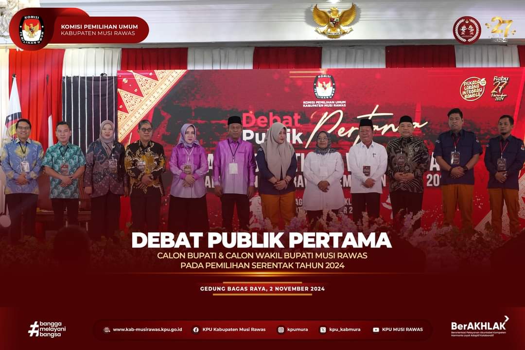 KABAR SILAMPARI.COM – Komisi Pemilihan Umum Daerah (KPUD) Musi Rawas menyelenggarakan debat publik Perdana Calon Bupati dan Wakil Bupati Kabupaten Musi Rawas, debat tersebut diikuti oleh Pasangan calon (PASLON) Nomor Urut 1.Hj.Ratna Machmud dan H.Suprayitno kemudian Paslon nomor urut 2 Hj.Suwarti Burlian Dan H.Thamarin Hasan,